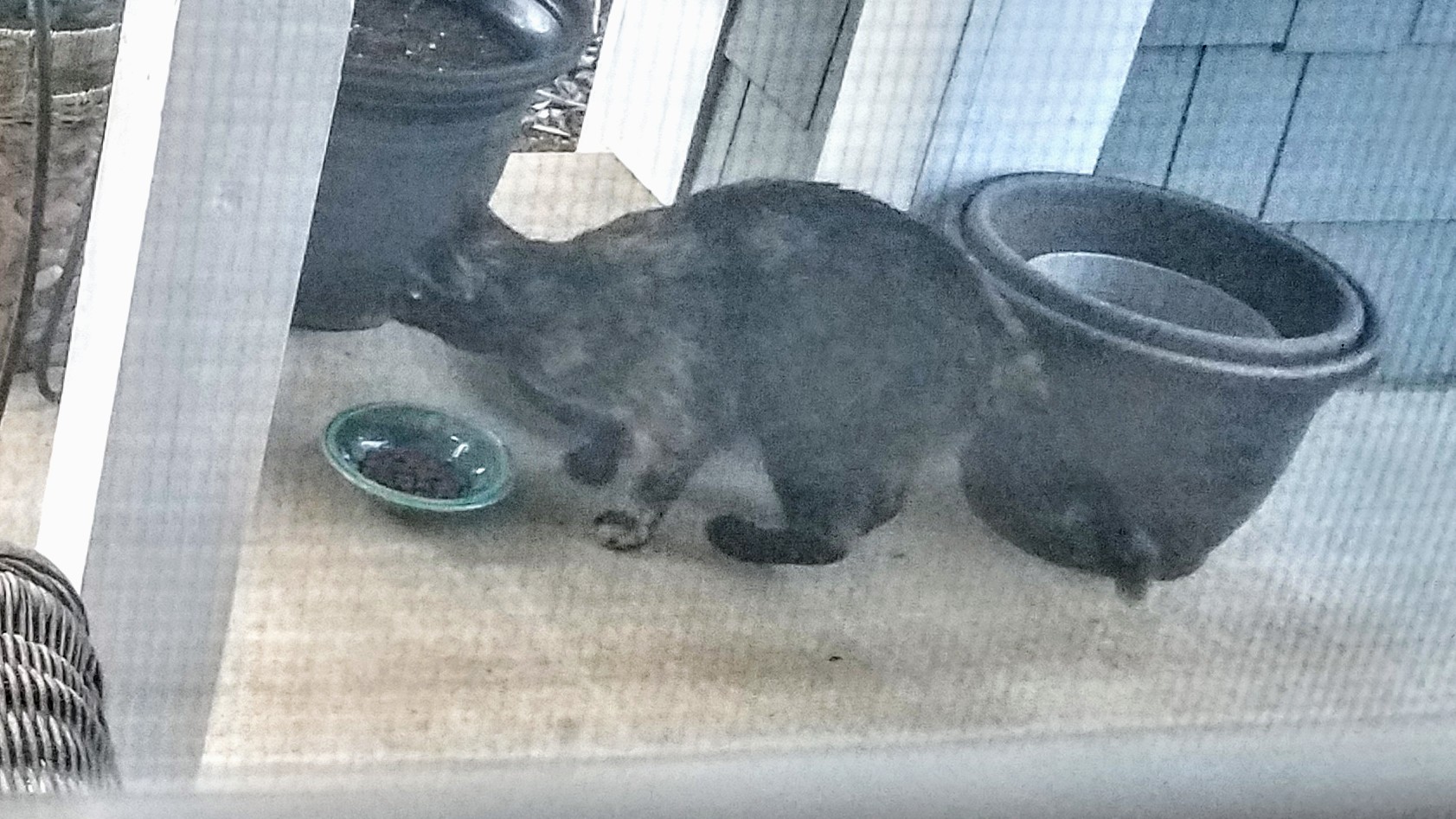 Very dark stray Calico cat visiting.